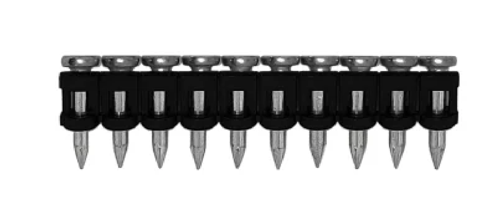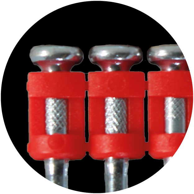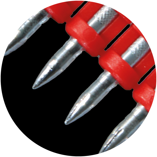 Suprafața zimțată a cuiului îmbunătățește aderența pe materiale dure, cum ar fi betonul și oțelul.