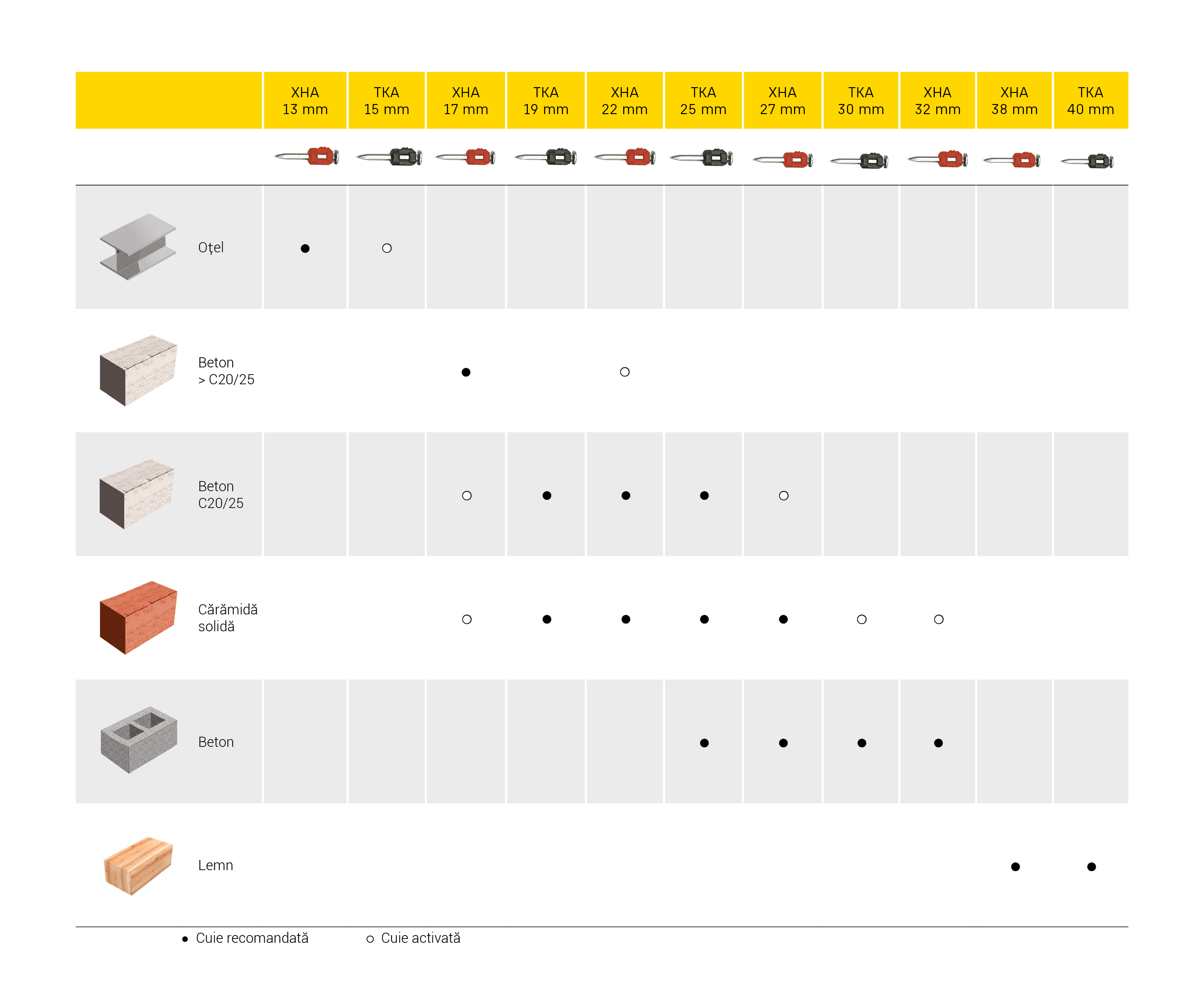 Potrivit pentru fixarea în beton, beton ușor, cărămidă solidă, cărămidă goală, piatră naturală, beton celular și calcar solid.