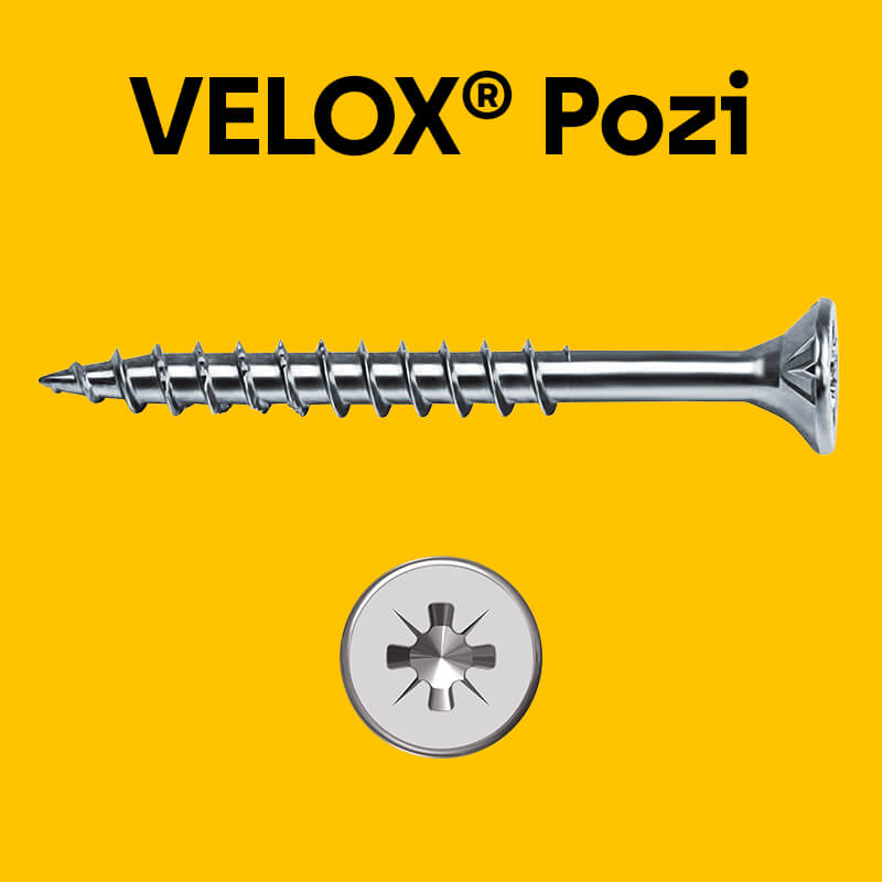 Șurubul VELOX® Pozi are un filet frontal special, patentat, care reduce la minimum riscul de crăpare a lemnului și necesită o forță de înșurubare semnificativ mai mică. Datorită acestui design, vei putea lucra mai rapid și mai confortabil, prelungind totodată durata de viață a uneltelor cu acumulator.