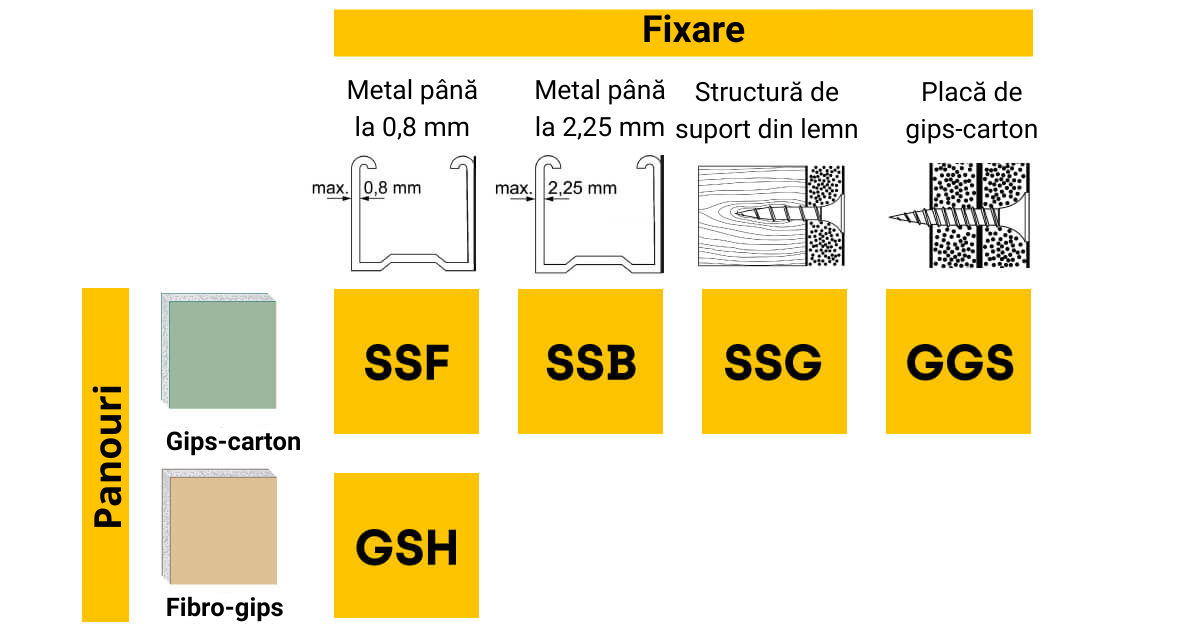 2.3 Fixarea plăcilor de gips-carton pe structuri metalice (max. 0,8 mm)